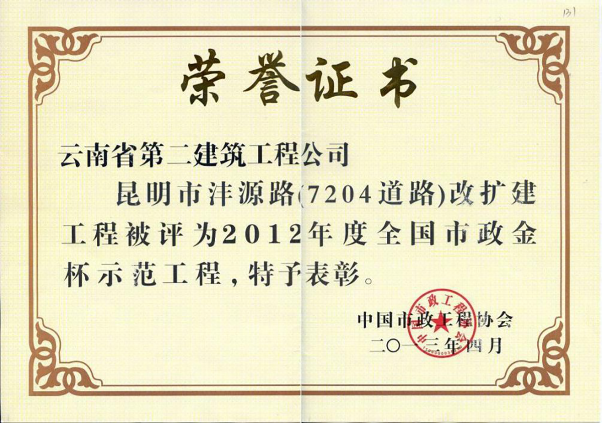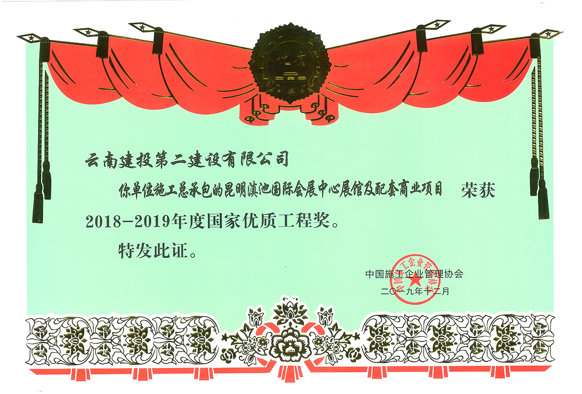 公司承建的項目先后獲得魯班獎 5 項,中國安裝之星 4 項,中國有色金屬工業(yè)優(yōu)質(zhì)工程 7 項,全國市政金杯示范獎 1 項,中國公路交通優(yōu)質(zhì)工程獎1項,國家級優(yōu)質(zhì)工程 10 項以及省級優(yōu)質(zhì)工程 90 余項。