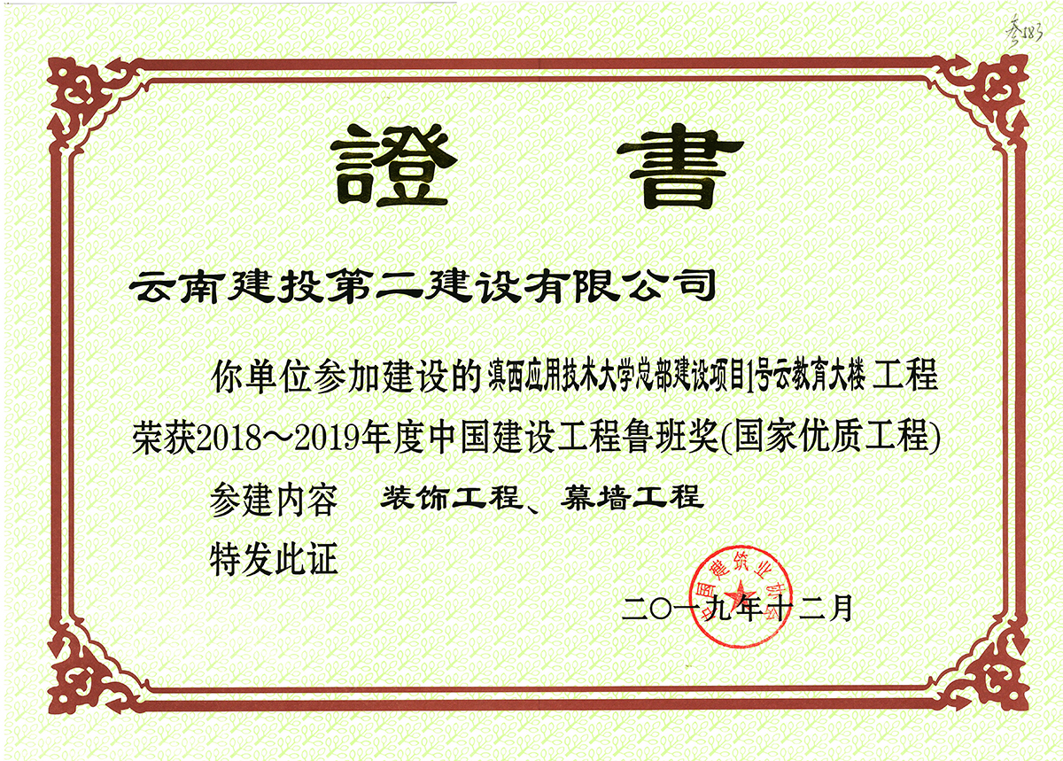 4 | 滇西應(yīng)用技術(shù)大學總部建設(shè)項目一號云教育大樓 | 中國建筑業(yè)協(xié)會 | 2019 | |